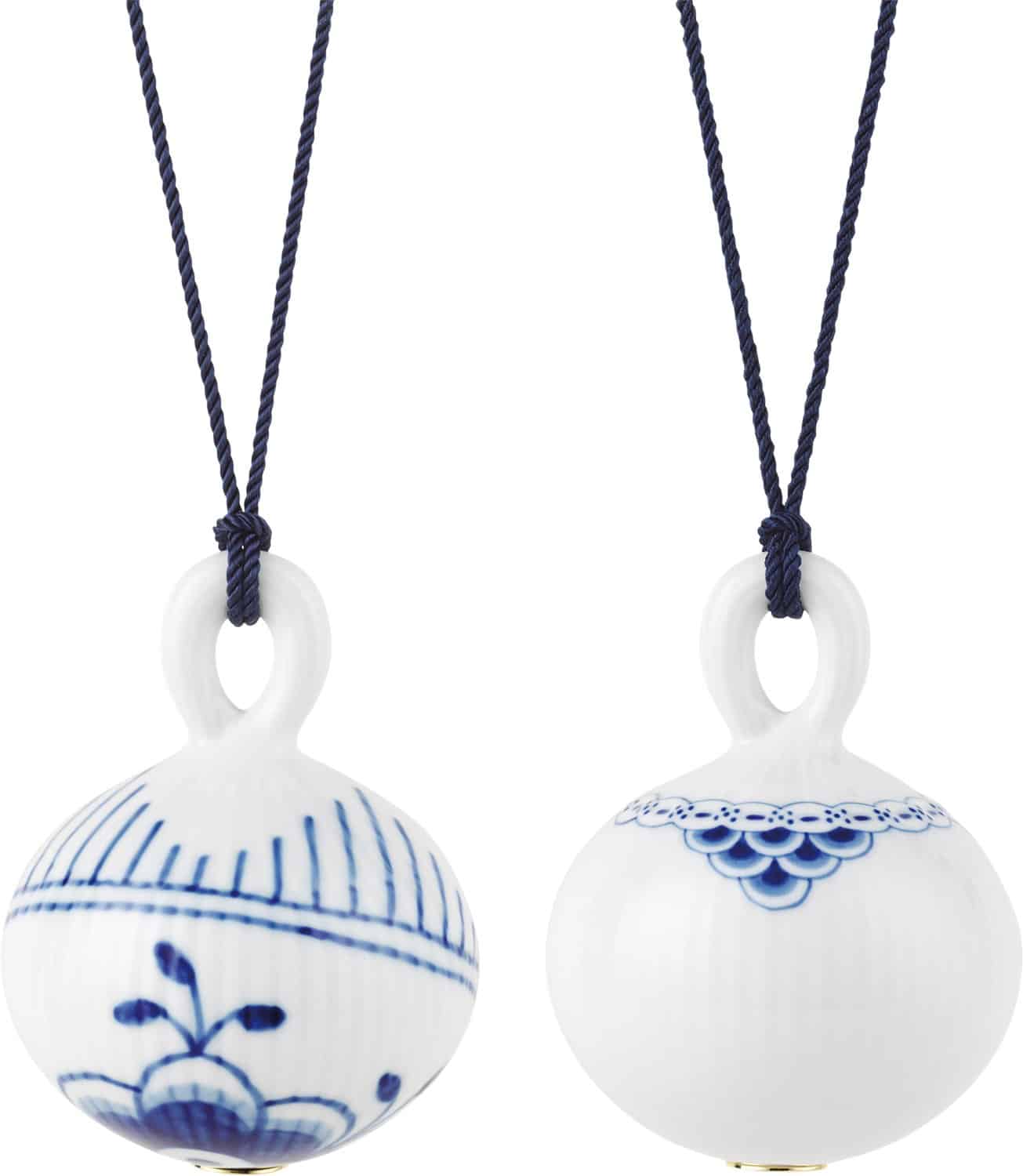 Royal Copenhagens porcelænsjulekugler er perfekte samlerobjekter. De smukke julekugler er håndmalet med Royal Copenhagens klassiske mønstre og ser smukke ud på juletræet eller hængende fra en gren i vindueskarmen. Sættet med to kugler har en smuk kombinat
