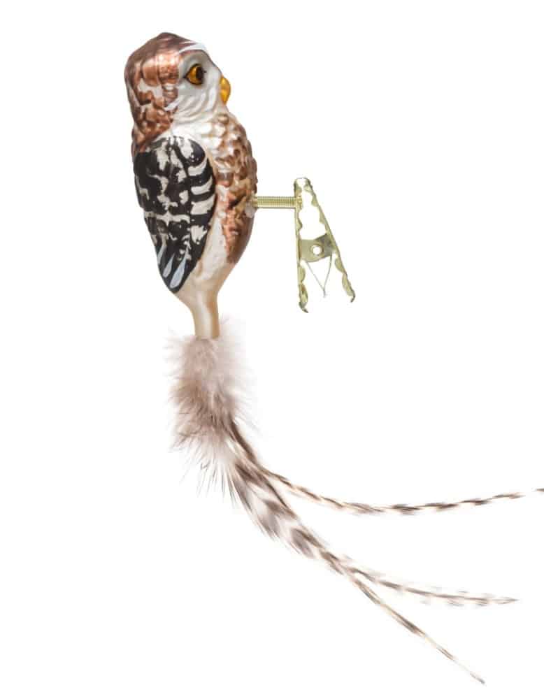 Giv julepynten et naturligt og stemningsfuldt præg med denne smukke brune skovugle i glas. Uglen er mundblæst og håndmalet på det traditionsrige Glasbläserei Thüringer Weihnacht, hvor hver detalje formes med omhu. Kroppen er malet i dybe brune og lysebrun