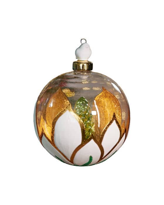 Skab en magisk stemning på juletræet med Adrielle julekugle i klart, mundblæst glas. Den er udsmykket med bladformede felter i hvidt med gyldne konturer, mens grønne detaljer indeni leder tankerne mod julens grantræer og forstærker den festlige atmosfære. En eksklusiv og iøjnefaldende pynt, der forener klassiske farver med tidløs elegance.Greengrove Castle Collection samler julekugler, der kombinerer tidløs elegance med en følelse af højtidelig pragt. Med unikke mønstre, luksuriøse detaljer og klassisk håndværk bliver hver kugle en dekoration, der løfter juletræet til noget helt særligt. En kollektion skabt til at sprede julestemning og blive en naturlig del af traditionen år efter år.