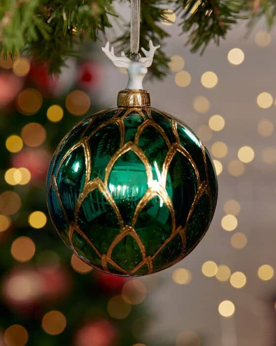 Lad juletræet stråle af elegance med Bastian julekugle i mundblæst glas, smukt farvet i dyb grøn og udsmykket med et dekorativt mønster i skinnende guld. Den blanke overflade reflekterer lyset smukt og fremhæver kuglens eksklusive udtryk. En dekoration, der udstråler klassisk håndværk og tidløs skønhed.Greengrove Castle Collection samler julekugler, der kombinerer tidløs elegance med en følelse af højtidelig pragt. Med unikke mønstre, luksuriøse detaljer og klassisk håndværk bliver hver kugle en dekoration, der løfter juletræet til noget helt særligt. En kollektion skabt til at sprede julestemning og blive en naturlig del af traditionen år efter år.