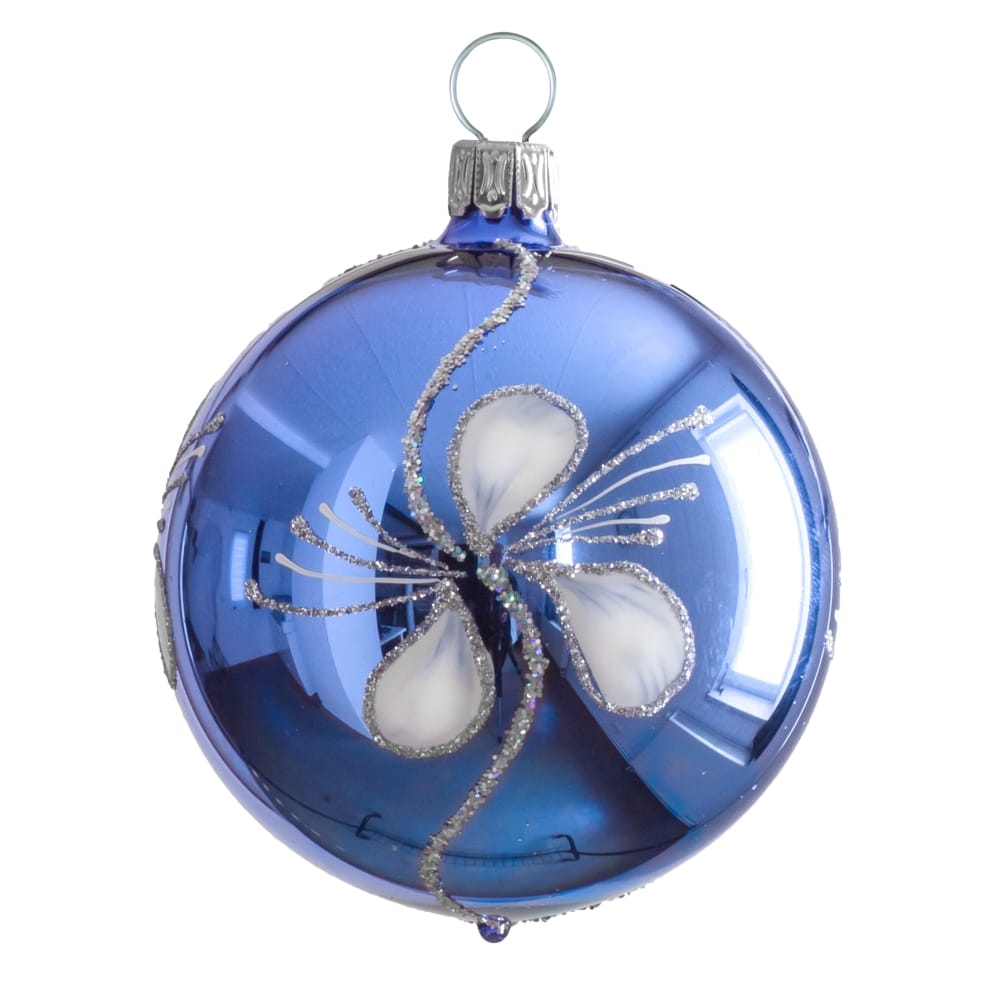 De blå glaskugler med mønster er 7 cm i diameter. De er mundblæste, håndmalede og fremstillet i ægte glas. Mål:Diameter: 7 cm Fremstillet af glasPakket med 4 stk. i en æske.