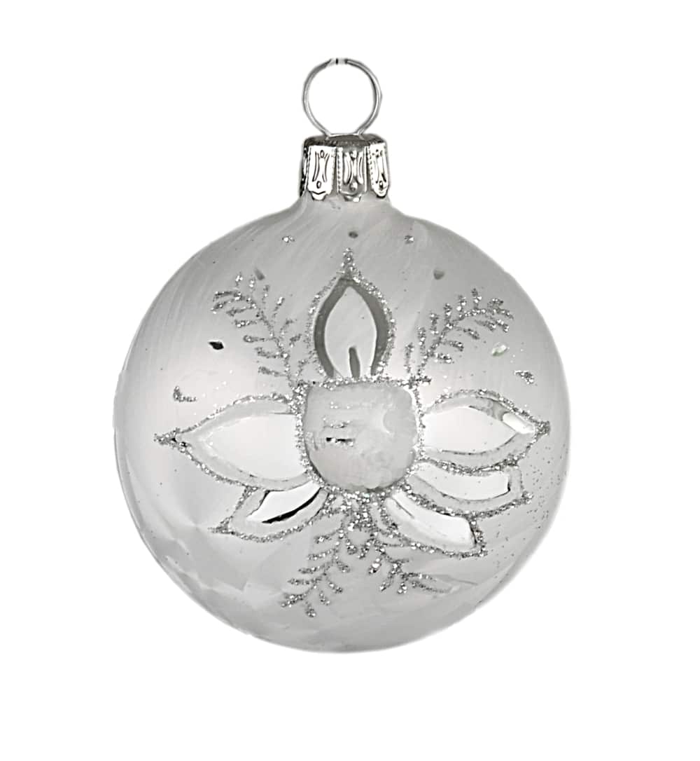 De mat hvide glaskugler med mønster er mundblæste, håndmalede og fremstillet i ægte glas. Mål:Diameter: 6 cm Fremstillet af glasPakket med 5 stk. i en æske.