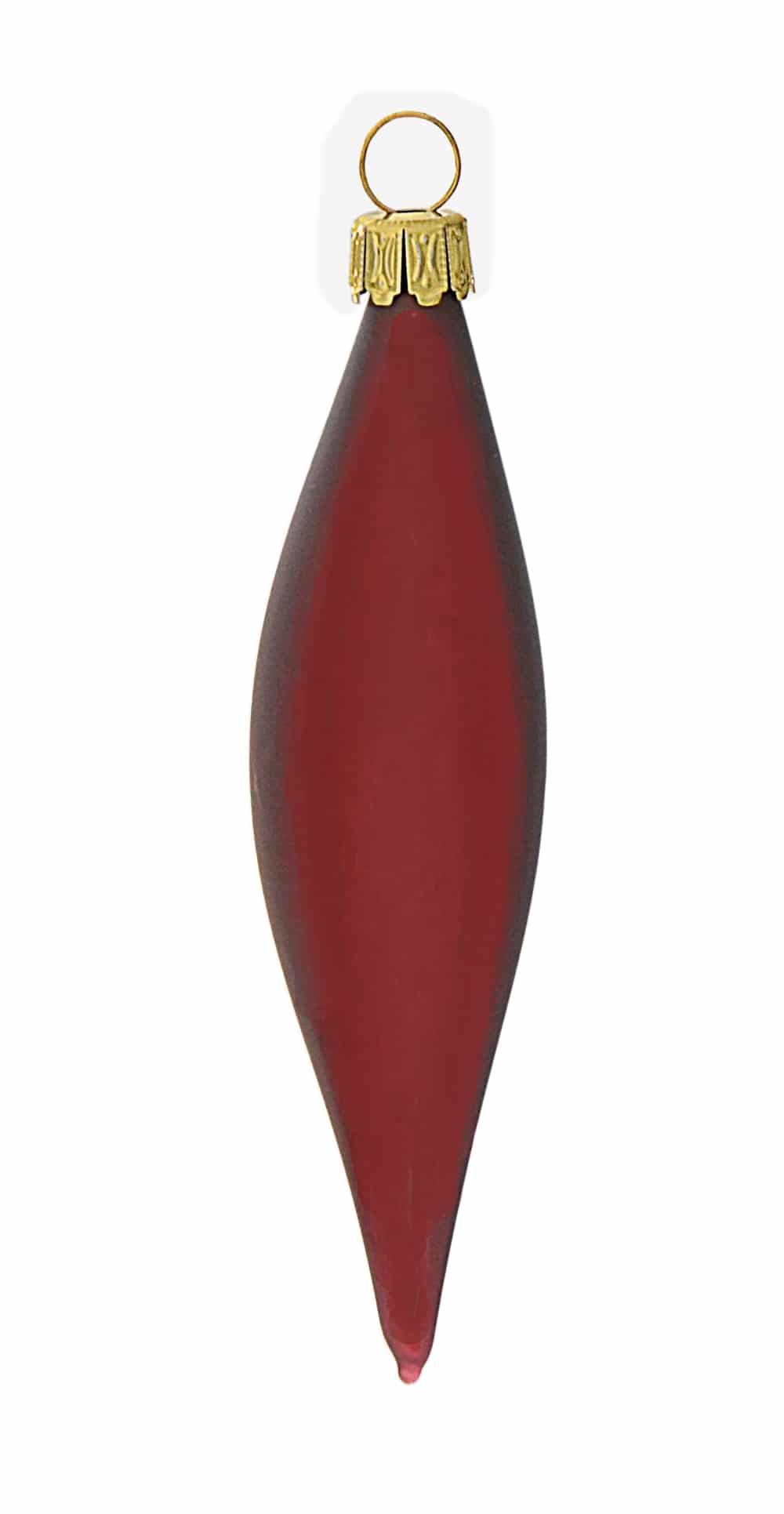 Smukke julekugler med aflang form i mat, bordeaux nuance. Julekuglen er mundblæst og håndmalet hos det sydtyske glaspusteri Thüringer Weinacht.Mål:Højde: 12 cmFremstillet af glas.Pakket med 5 stk. i en æske.