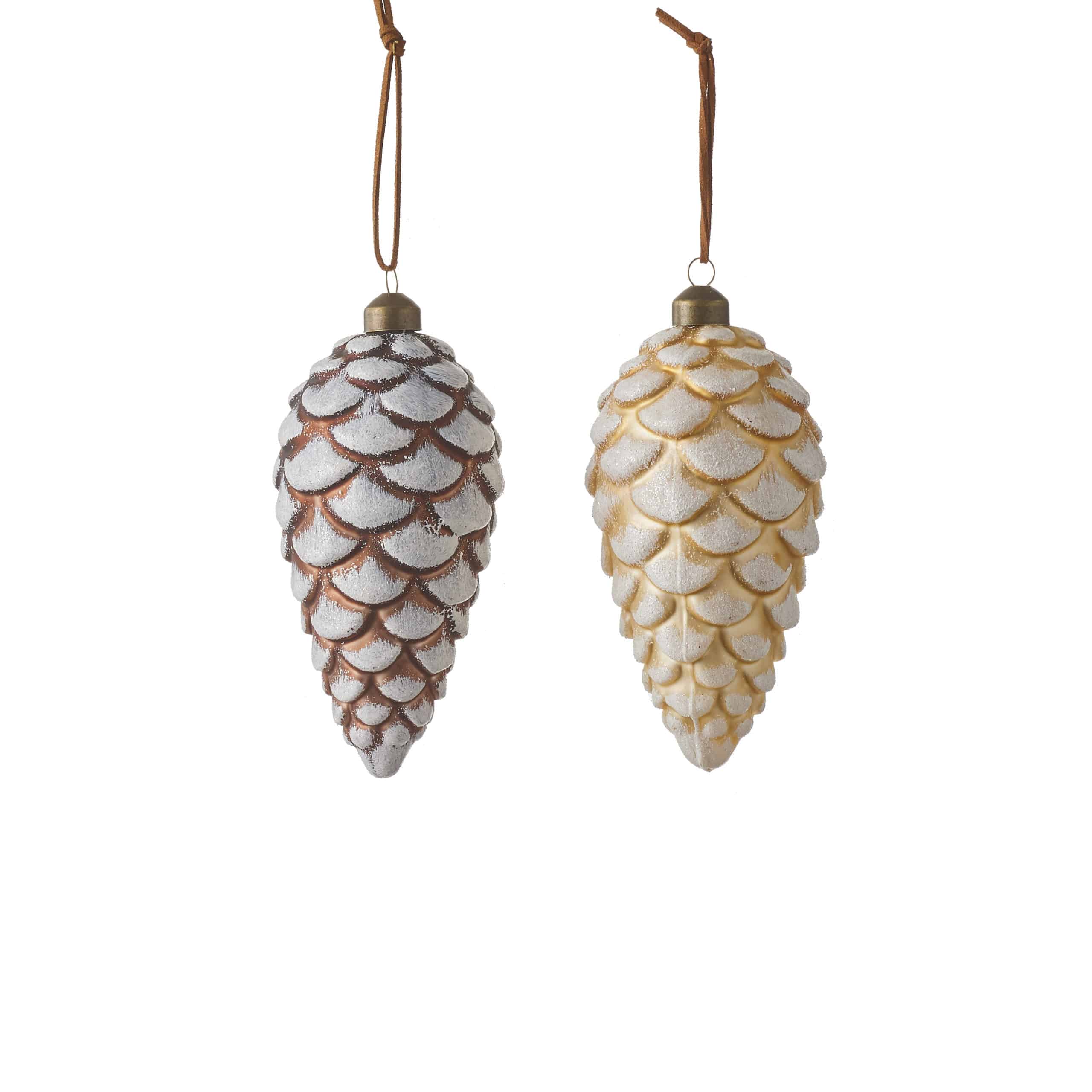 Grankogle i glas. Grankoglen findes i to varianter i enten guldfarvet eller kobberfarvet. Måler 15 cm i højden og 7,5 i diameter.Pakket med 1 stk.