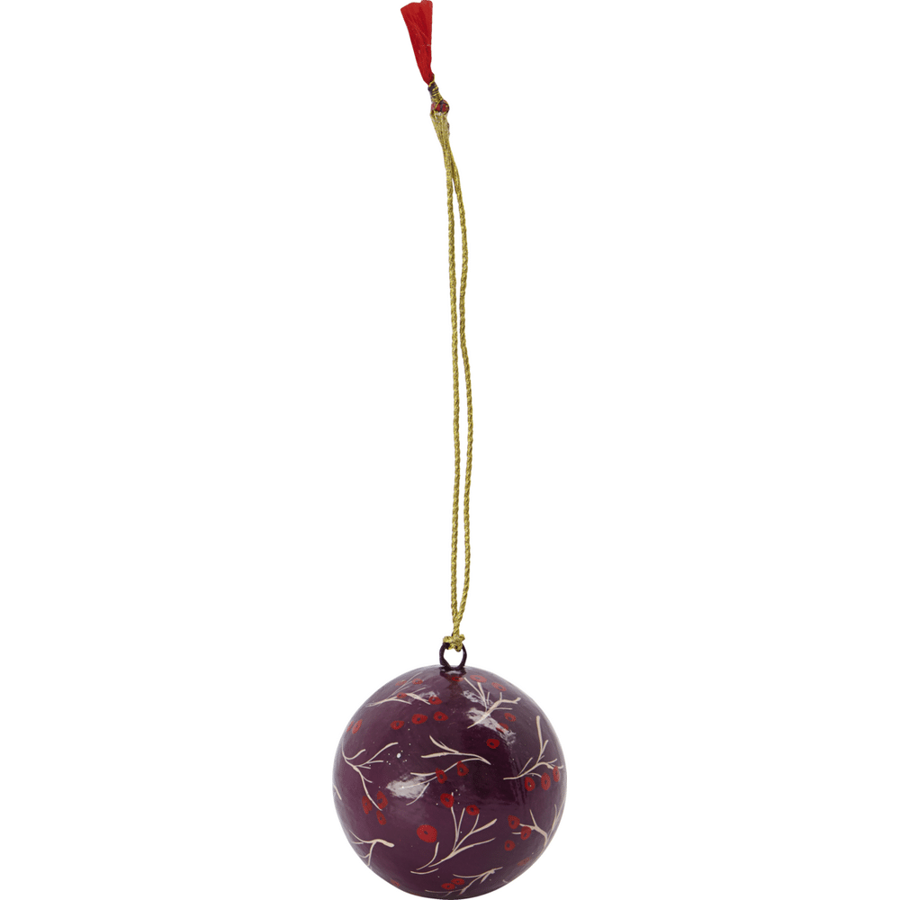 Med denne lille julekugle af papmaché får du julepynt med et håndlavet præg. House Doctor har designet kuglen Mache med et bladmønster og bær på en klassisk bordeaux baggrund skabt med vandfarve.