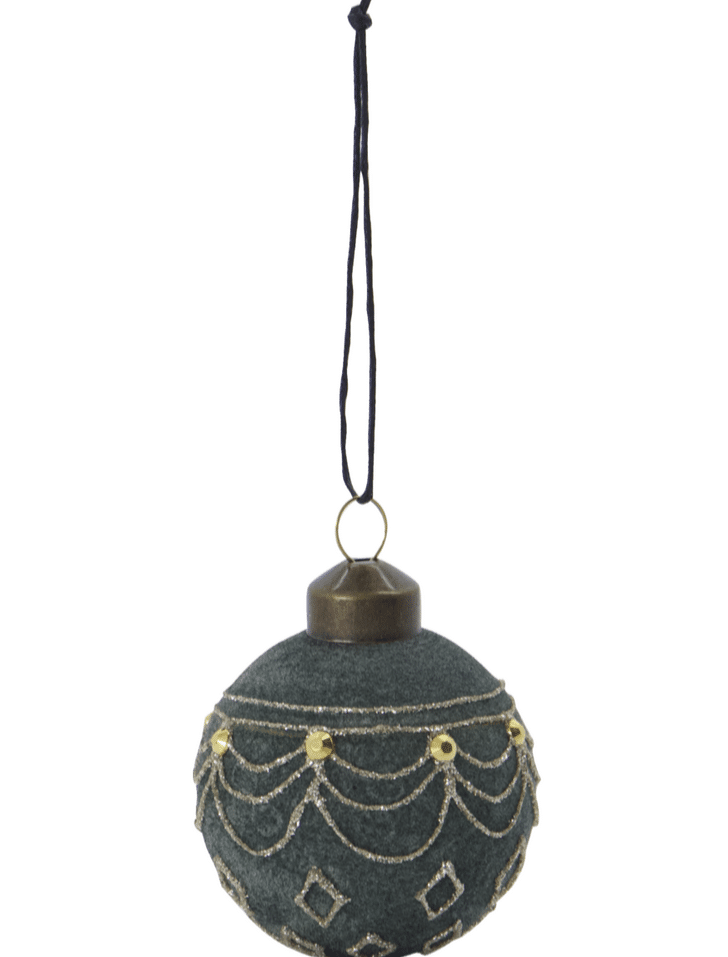 Der er intet julepynt som smukke julekugler. HDVelour er en lille julekugle designet af House Doctor, udført i en klassisk grøn farve med et fint, glitrende mønster og en fløjlsblød overflade af flock. .