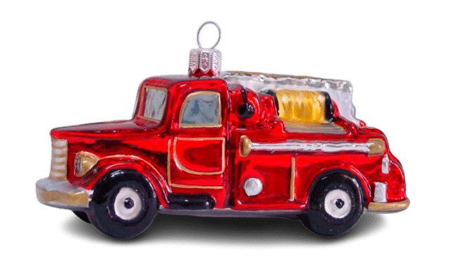Detaljerig julekugle, der forestiller en brandbil med stige og oprullede slanger. Julekuglen er mundblæst og håndmalet hos det østrigske glaspusteri Hanco. Figurkugler på grene og juletræer er skønne blikfang mellem de klassiske julekugler.Mål:Længde: 11,