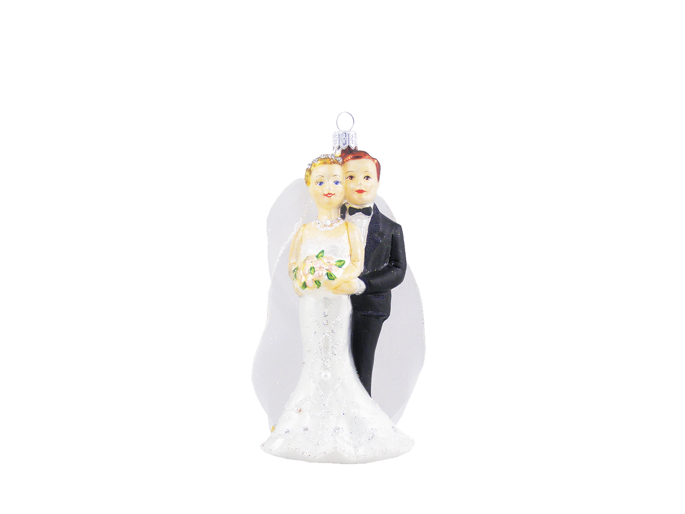 Detaljerig julekugle, der forestiller et brudepar. Julekuglen er mundblæst og håndmalet hos det østrigske glaspusteri Hanco. Figurkugler på grene og juletræer er skønne blikfang mellem de klassiske julekugler.Mål:Højde: 13 cmFremstillet af glas.Pakket med