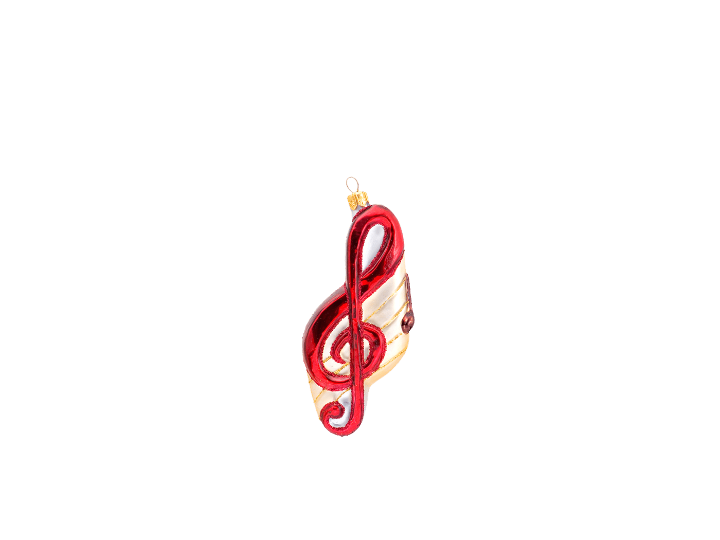 Detaljerig julekugle, der forestiller en g-nøgle med nodelinjer i baggrunden. Julekuglen er mundblæst og håndmalet hos det østrigske glaspusteri Hanco.Mål:Højde: 10,7 cmFremstillet af glas.Pakket med 1 stk.