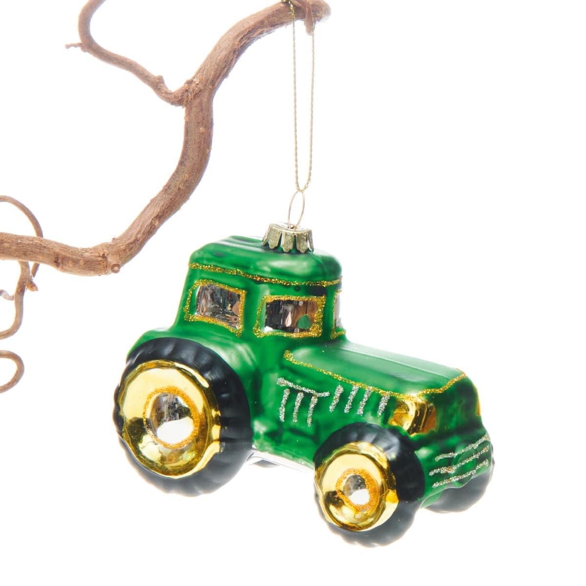 Flot, grøn traktor med store dæk og guld- og sølvfarvede glimmer detaljer. Liver op på juletræet blandt de mere traditionelle julekugler.Mål:Længde: 9 cmBredde: 5 cmHøjde: 7,5 cmFremstillet af glas.Pakket med 1 stk.