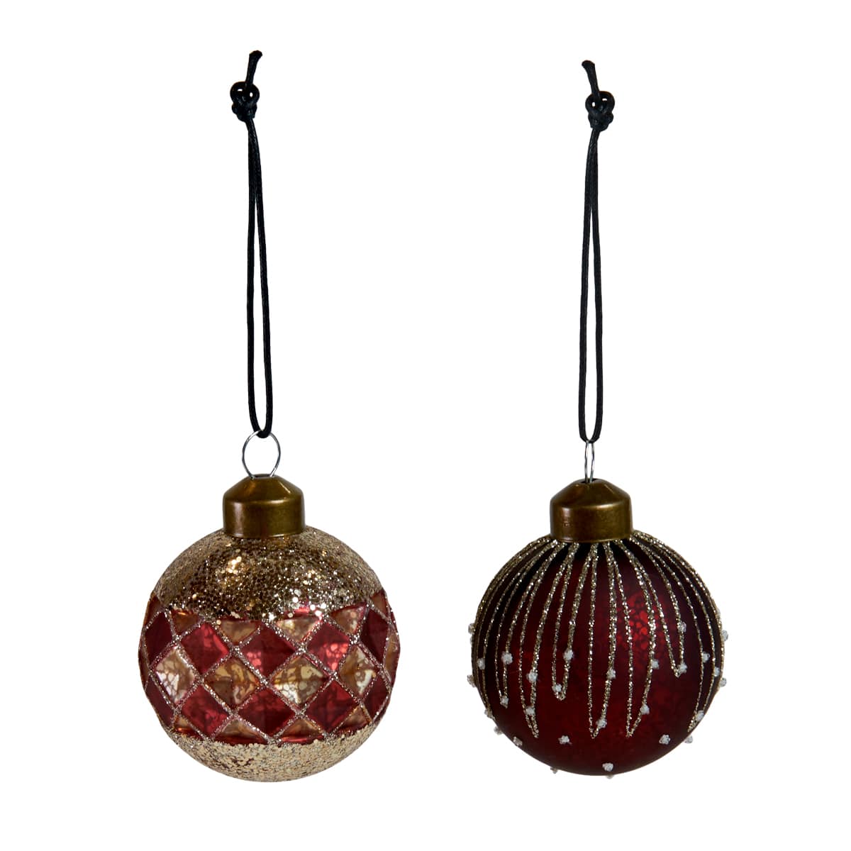 Julekugle med enten harlenkinmønster og glimmer i top og bund eller julekugle med glimmermønster og små hvide perler. Smukke julekugler til pynt på fx juletræet, julebordet eller lysfadet. Julekuglerne er fra Speedtsbergs julekollektion.Mål:Diameter: 6 cm