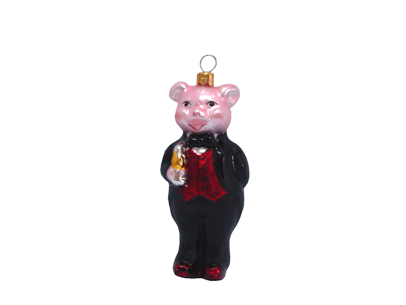 Detaljerig julekugle, der forestiller Hr. Gris iført sit fineste tøj og klar til julens fester. Julekuglen er mundblæst og håndmalet hos det østrigske glaspusteri Hanco. Figurkugler på grene og juletræer er skønne blikfang mellem de klassiske julekugler.M