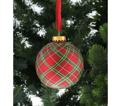 Julekugle udført i et smukt design af tartanfarvet glas, med en diameter på 10 cm.
