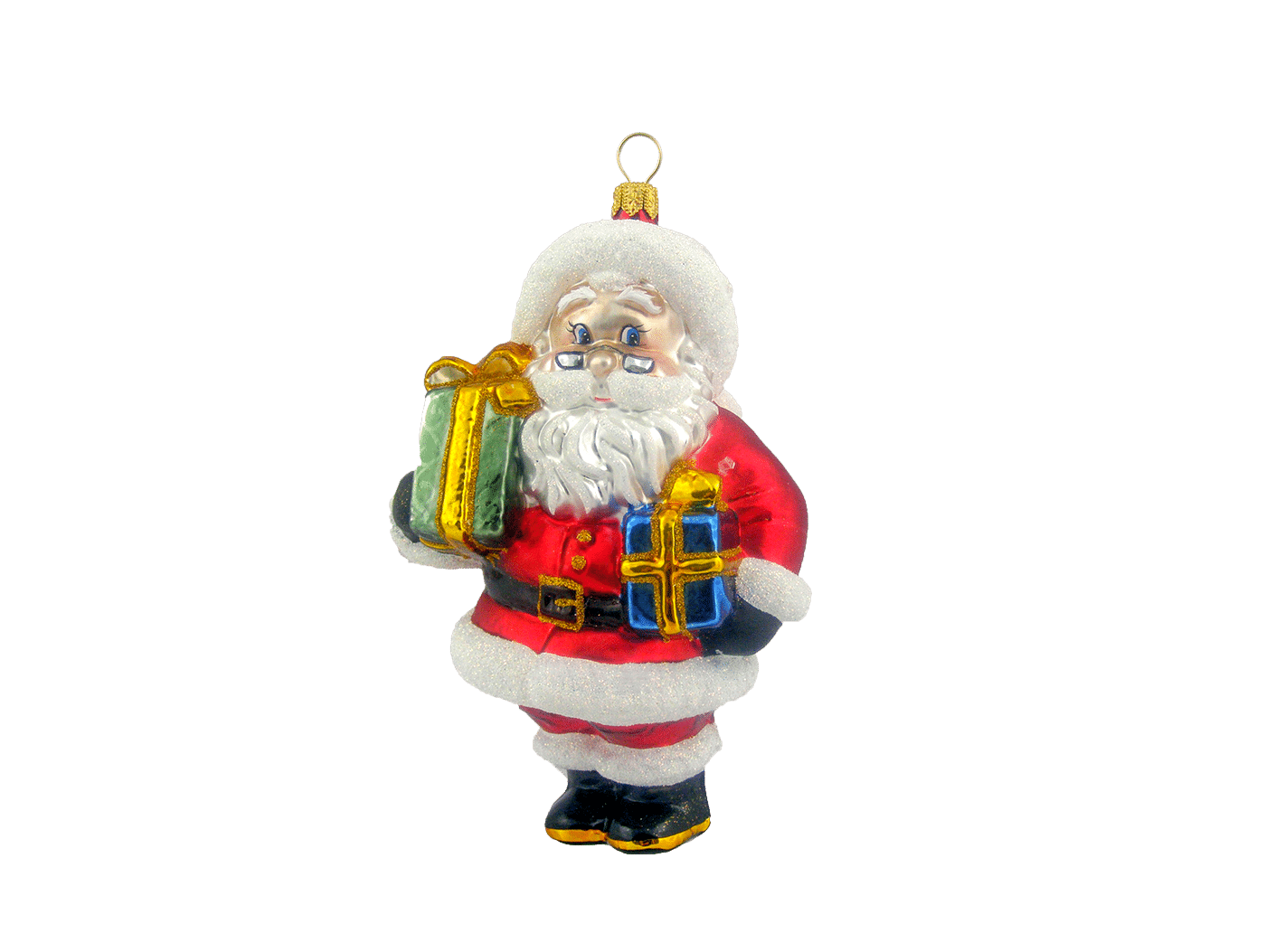 Detaljerig julekugle, der forestiller julemanden med hænderne fulde af julegaver. Julekuglen er mundblæst og håndmalet hos det østrigske glaspusteri Hanco. Figurkugler på grene og juletræer er skønne blikfang mellem de klassiske julekugler.Mål:Højde: 12,5
