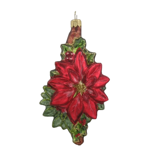 Detaljerig julekugle, der forestiller en julestjernedekoration. Julekuglen er mundblæst og håndmalet hos det østrigske glaspusteri Hanco. Figurkugler på grene og juletræer er skønne blikfang mellem de klassiske julekugler.Mål:Højde: cmFremstillet af glas.