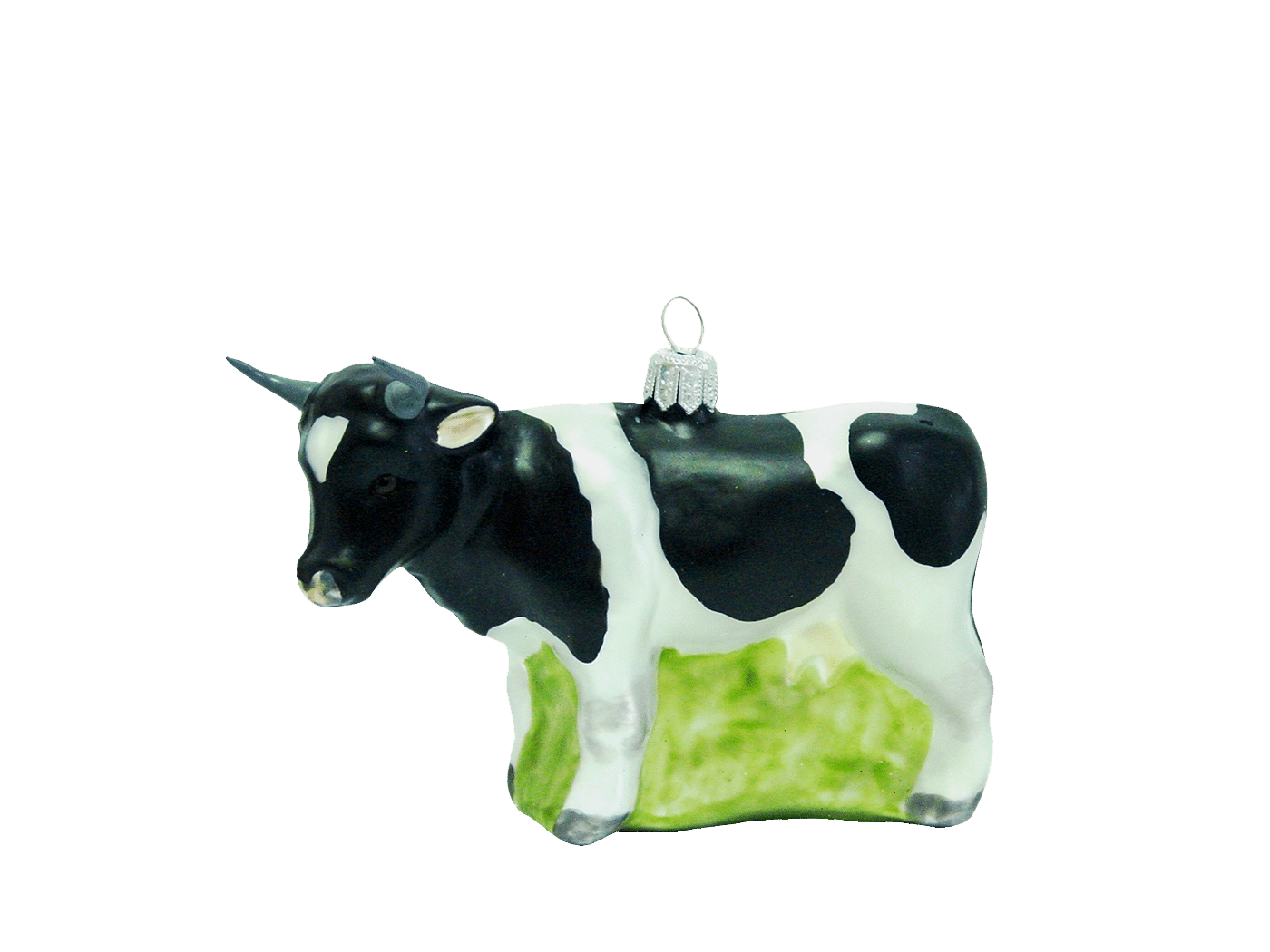 Detaljerig julekugle, der forestiller en sort og hvidbroget ko. Julekuglen er mundblæst og håndmalet hos det østrigske glaspusteri Hanco.Mål:Højde: 12 cmFremstillet af glas.Pakket med 1 stk.