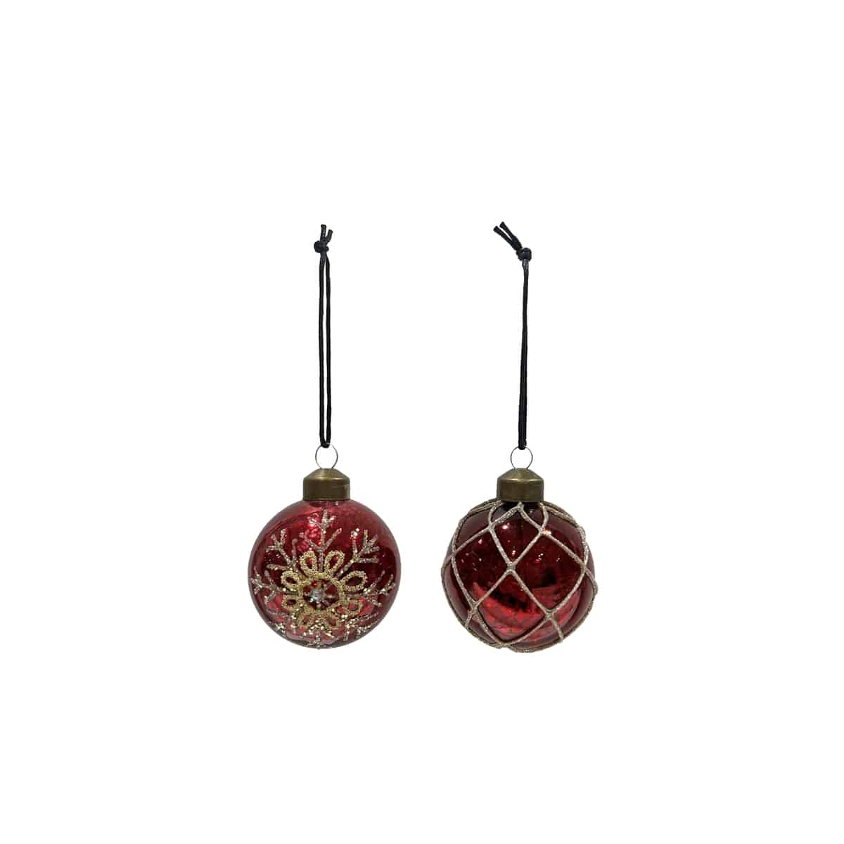 Julekugle Krakeleret rød 6 cm i dia -Ruder