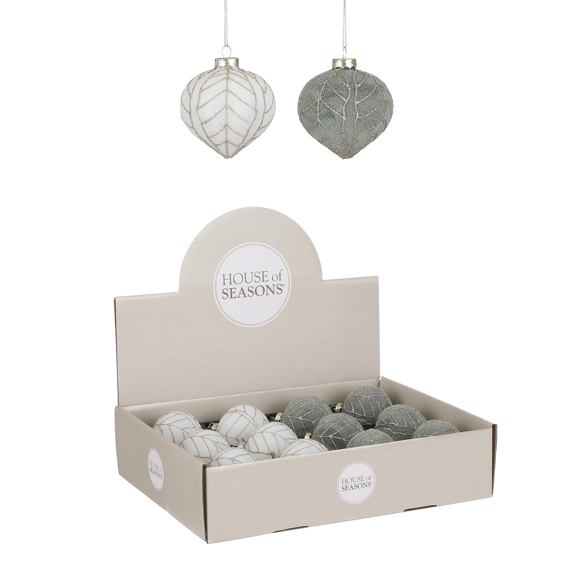 Julekugle Løgformet med blad – Hvid