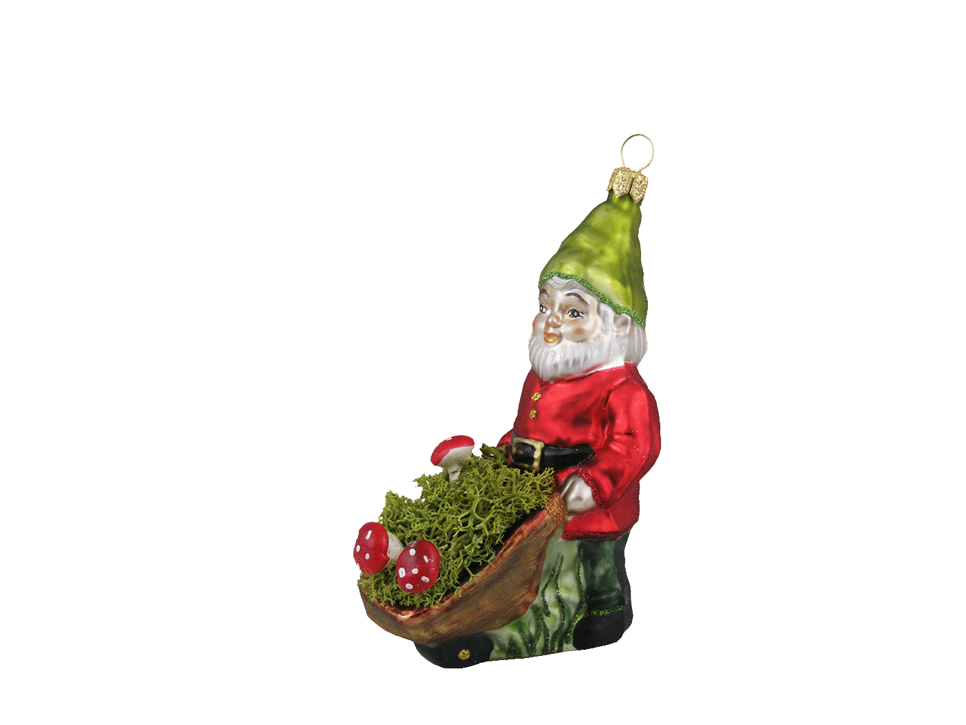 Detaljerig julekugle, der forestiller en havenisse med trillebøren fyldt. Julekuglen er mundblæst og håndmalet hos det østrigske glaspusteri Hanco. Figurkugler på grene og juletræer er skønne blikfang mellem de klassiske julekugler.Mål:Højde: 11 cmFremsti