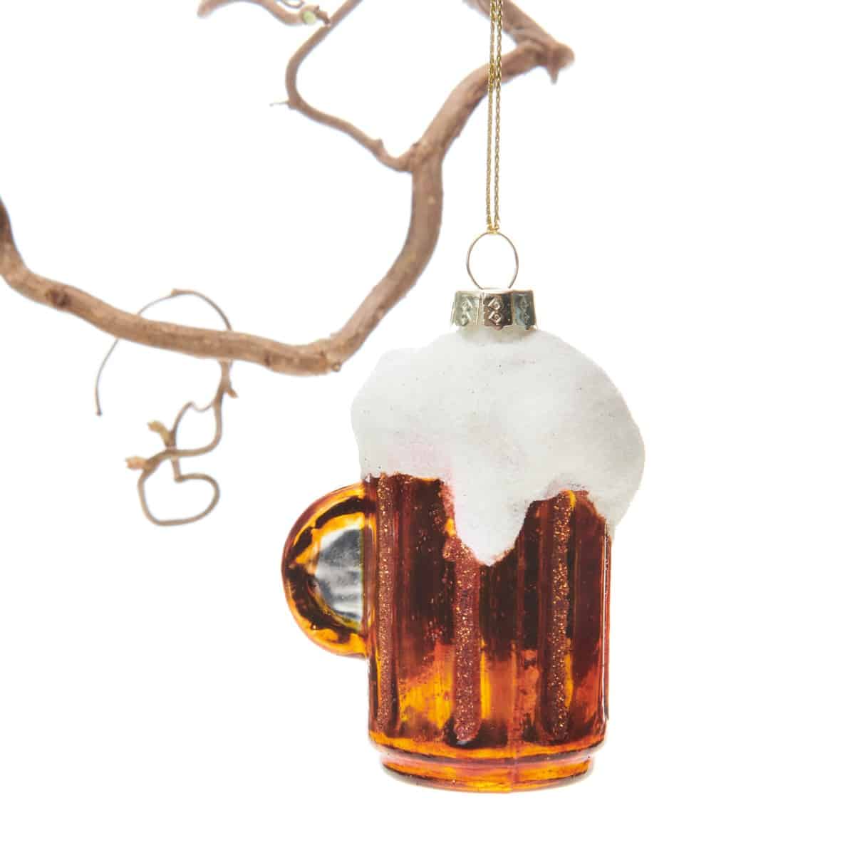 Der er øl til kanten af ølkrusset og masser af skum på toppen af denne festlige julekugle. Mål:Diameter: 5 cmHøjde: 8 cmFremstillet af glas.Pakket med 1 stk.