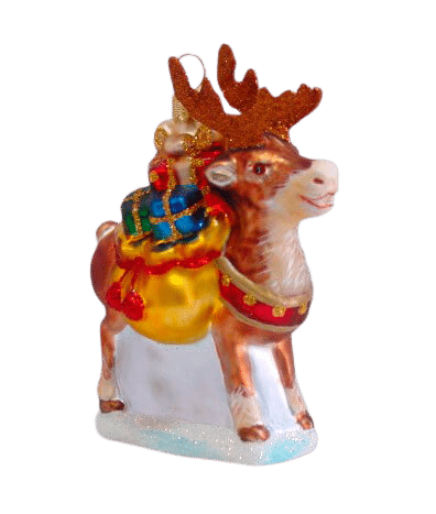 Detaljerig julekugle, der forestiller et rensdyr med gaver. Julekuglen er mundblæst og håndmalet hos det østrigske glaspusteri Hanco. Figurkugler på grene og juletræer er skønne blikfang mellem de klassiske julekugler.Mål:Højde: 10,3 cmFremstillet af glas