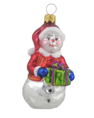 Detaljerig julekugle, der forestiller en snemandsdame med en pakke. Julekuglen er mundblæst og håndmalet hos det østrigske glaspusteri Hanco. Figurkugler på grene og juletræer er skønne blikfang mellem de klassiske julekugler.Mål:Diameter: ca. 3,5 cmHøjde