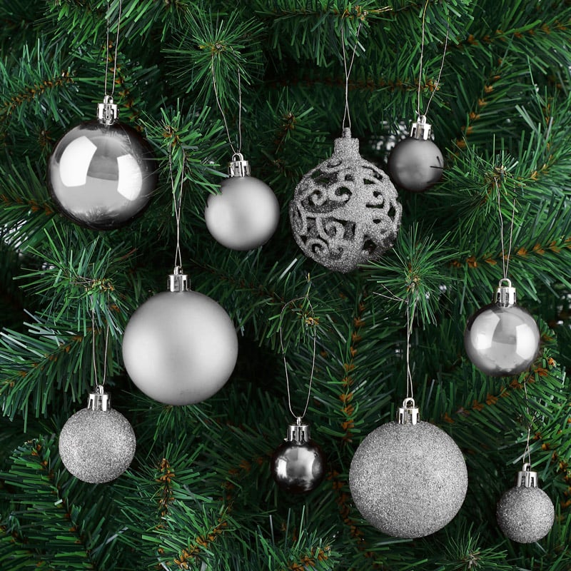 Pynt dit juletræ! Nyd julesæsonen med vores sølv juletræskugler sæt med 100 stk. Takket være deres overflade (mat eller blank) reflekterer julekuglerne lysene fra dit juletræ. Det er et farverigt højdepunkt i din juledekoration. Fleksibel brug: Disse jul