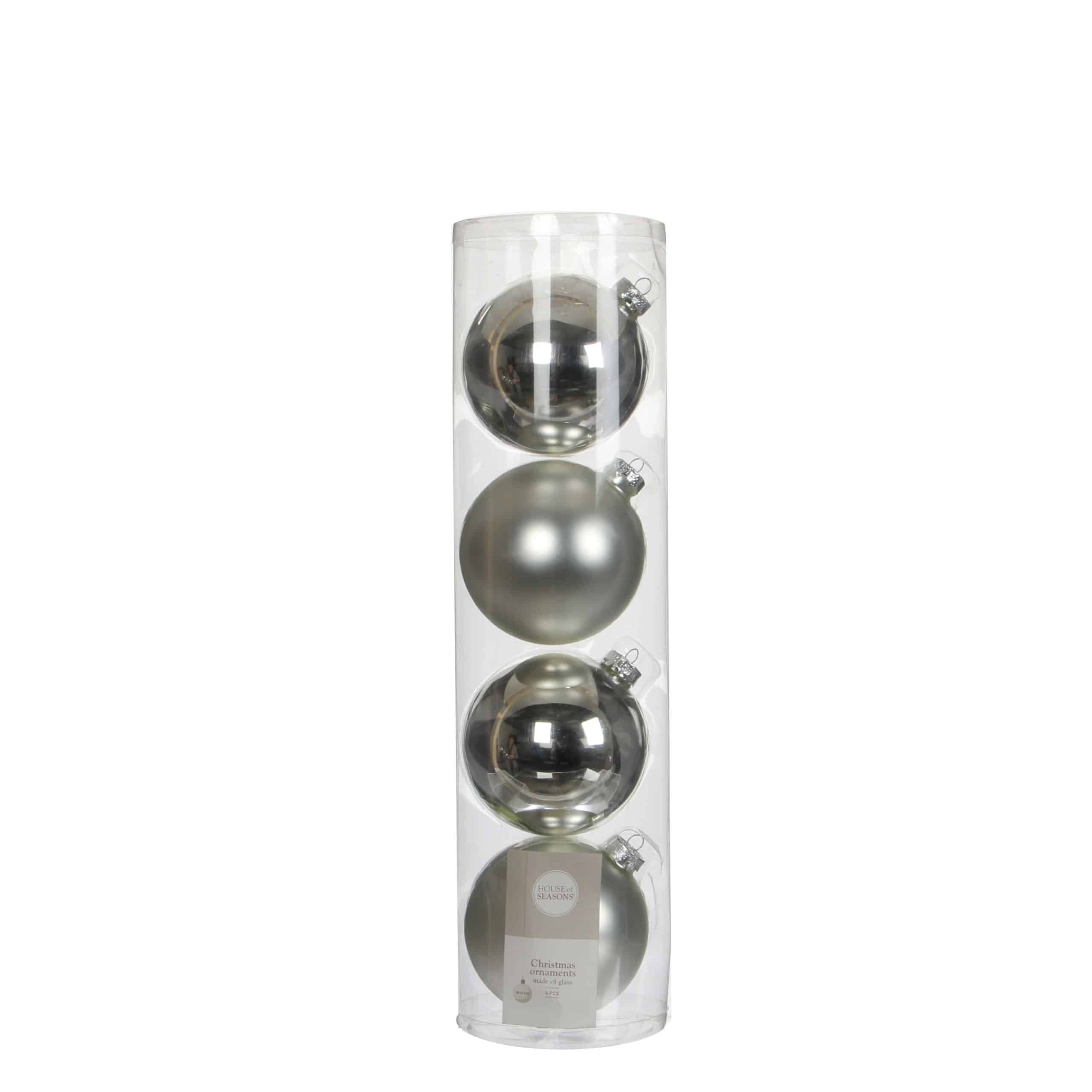 Julekugler 4-pak i sølv i glas. Sættet består to blanke og to matte juletræskugler. Sølv julekuglernes afdæmpede nuancer skaber en rolig og sofistikeret julestemning med lysreflekser og nordisk elegance. Mål:Diameter: 10 cm Fremstillet i glasPakken ind
