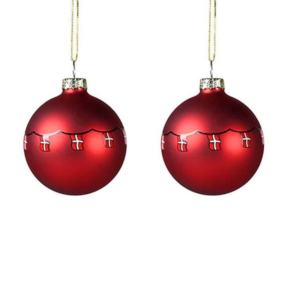 Julekugler Med Flagranke Rød – 2 stk. Julekugler