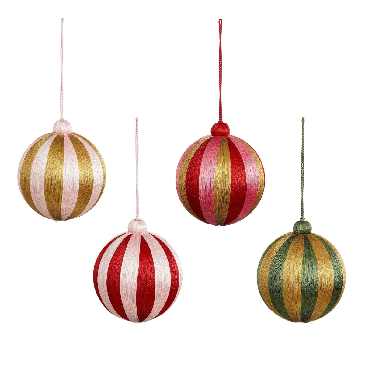 Julekugler med striber 10 cm i dia-Lyserød/Guld