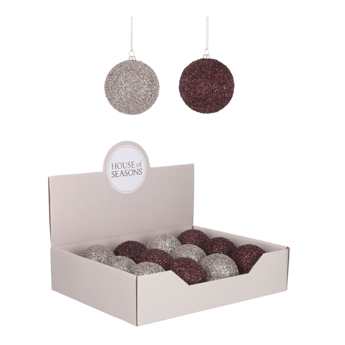 Julekugle i flamingo/plast med nubret, glinsende overflade. Julekuglen findes i to farver; rød eller champangefarvet. En julekugle der tåler lidt af hvert både ude og inde. Mål:Diameter på 8 cmFremstillet af flamingo og plastik.Pakket med 1 stk.