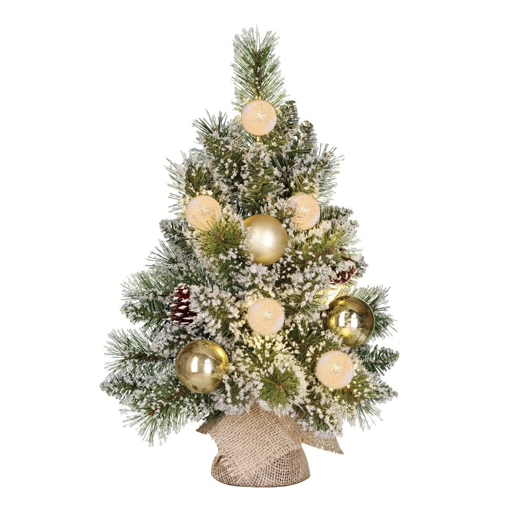 Kaprun juletræ med guldfarvet pynt og lys 45 cm højt