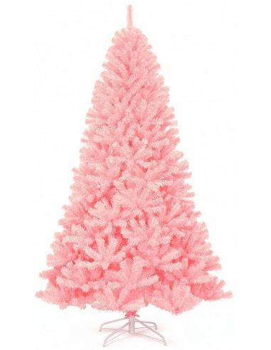 Kunstigt juletræ med pink grene. Træet måler cirka 225 cm i højden og 129 cm i diameter og kommer med fod.
