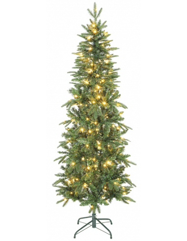 Kunstigt juletræ med naturtro grene og led lys. Træet måler cirka 180 cm i højden og 60 cm i diameter og kommer med fod.