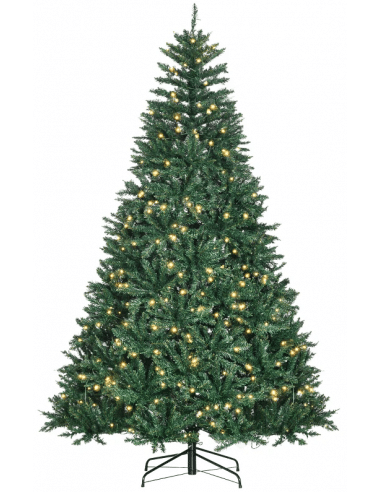 Kunstigt juletræ med naturtro grene og led lys. Træet måler cirka 210 cm i højden og 142 cm i diameter og kommer med fod.