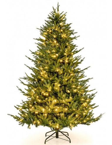 Kunstigt juletræ med naturtro grene med led lys. Træet måler cirka 213 cm i højden og 135 cm i diameter og kommer med fod. Træet har 380 led lys.