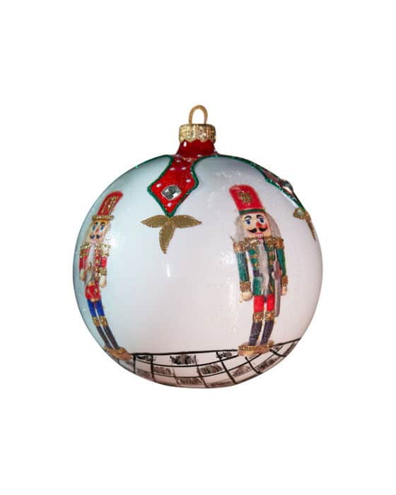 Glitrende detaljer og klassiske nøddeknækker-motiver gør Ludwig julekugle til en elegant dekoration, der giver juletræet et tidløst og raffineret udtryk. Den hvide overflade står smukt i kontrast til de farverige figurer og leder tankerne hen på julens eventyr og traditioner. Hver kugle er håndmalet, hvilket gør den unik og fuld af håndværksmæssig charme.