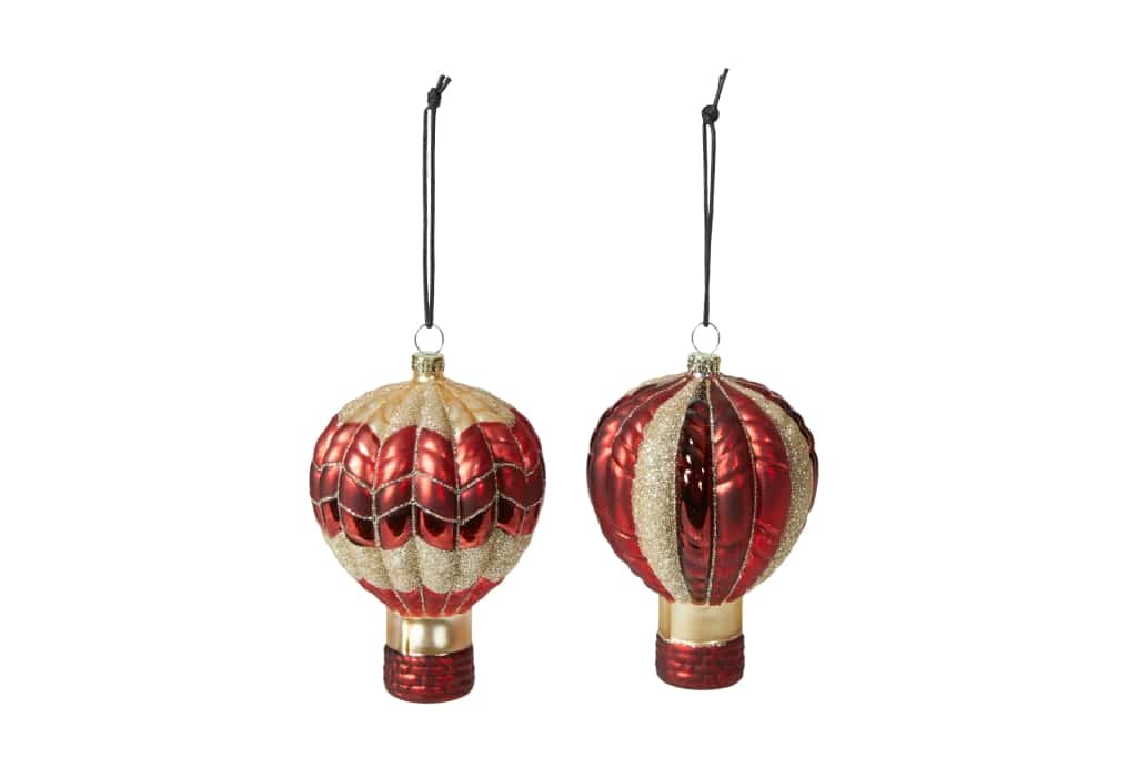 Luftballon i rød og guldfarvet og med glitter på. Fås i to modeller med enten små felter på ballonen eller lodrette striber på. Luftballonerne fra Speedtsberg er meget dekorative med deres form og mønstre. Mål:Diameter: 8 cmHøjde: 12 cmFremstillet af glas