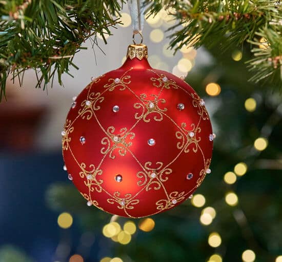 Pynt juletræet med denne vidunderligt dekorerede julekugle i en elegant og mat rød farve. Julekuglen har flotte håndmalede detaljer i guld samt små smukke perler. Skab en fortryllende stemning i dit hjem og pynt dit juletræ med eksklusive julekugler fra Lux. Kollektionen Lux er en unik serie af håndlavede glaskugler i forskellige farver og former med smukke, detaljerede mønstre. En klassisk dekoration til dit hjem, der skaber en ægte julestemning.