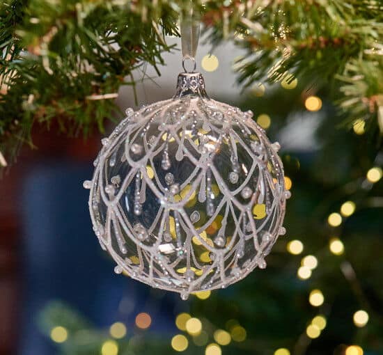 Elegant julekugle i klart glas med et flot flæsemønster med små perler, der pynter smukt på juletræet. Skab en fortryllende stemning i dit hjem og pynt dit juletræ med eksklusive julekugler fra Lux. Kollektionen Lux er en unik serie af håndlavede glaskugler i forskellige farver og former med smukke, detaljerede mønstre. En klassisk dekoration til dit hjem, der skaber en ægte julestemning.