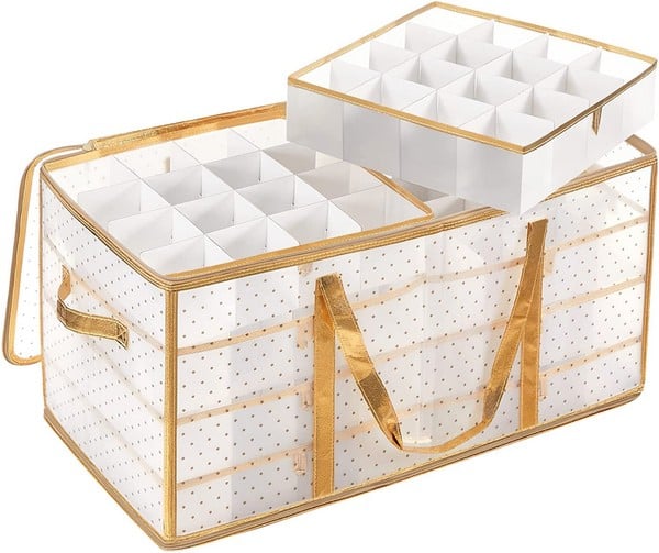 Opbevaringstaske til julekugler med 128 rum – julekugle taske – Opbevaring – Daily-Living – Opbevaringstaske til julekugler med 128 rum – taske med opbevaringsrum til glaskugler og andet julepynt – gylden