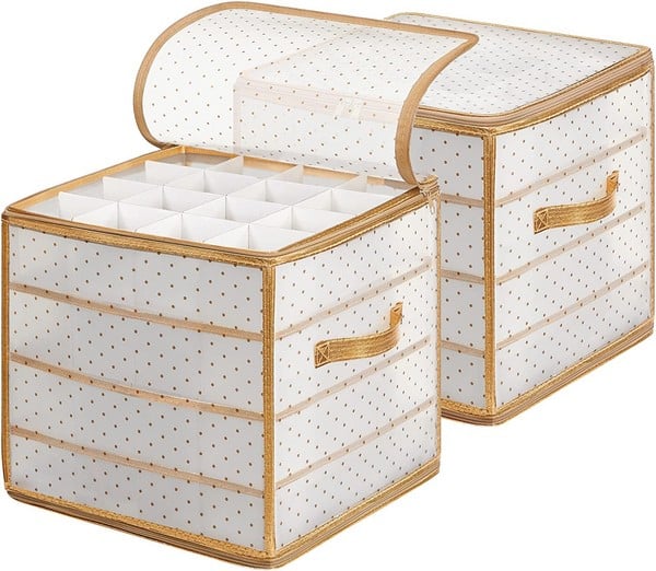 Opbevaringstasker til julekugler med 128 rum – 2 julekugle tasker – Opbevaring – Daily-Living – Opbevaringstaske til julekugler med 128 rum – 2 tasker med 64 opbevaringsrum til glaskugler og andet julepynt – gylden