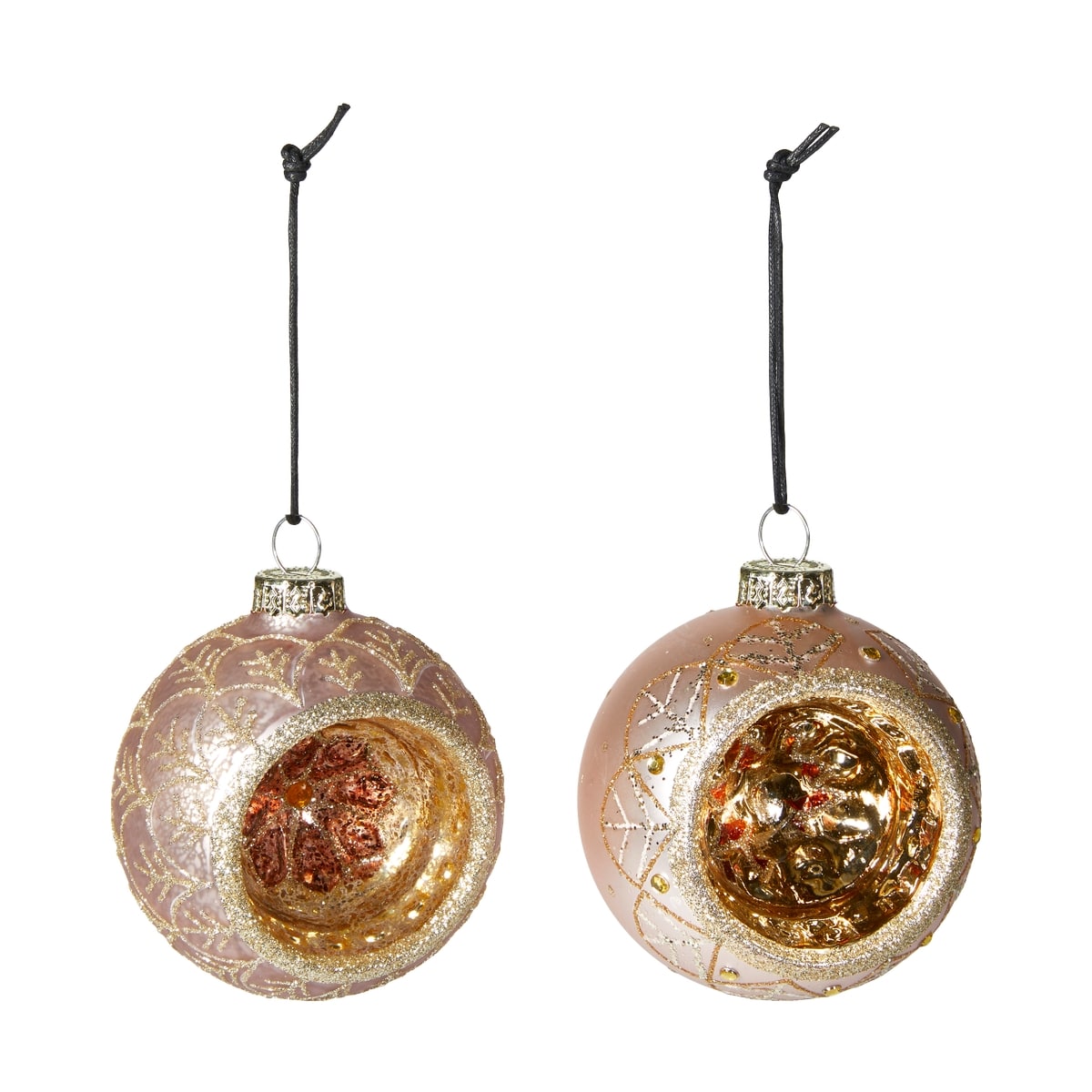 Reflekskugler i lys rosa med mønster og flot midte. Reflekskuglerne reflekterer lyset omkring sig på smukkeste vis. Vælg mellem med grenmønster eller med glittersten fra Speedtsbergs julekollektion. Mål:Diameter: 8 cmFremstillet i glas.Pakket med 1 stk.