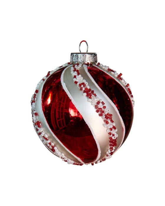 Selena er en elegant julekugle, der kombinerer klassisk charme med moderne detaljerigdom. De røde og sølvfarvede striber er dekoreret med små perler, som fanger lyset og spreder en festlig glans på juletræet. Perfekt at blande de forskellige former for at skabe en levende og stilfuld helhed.