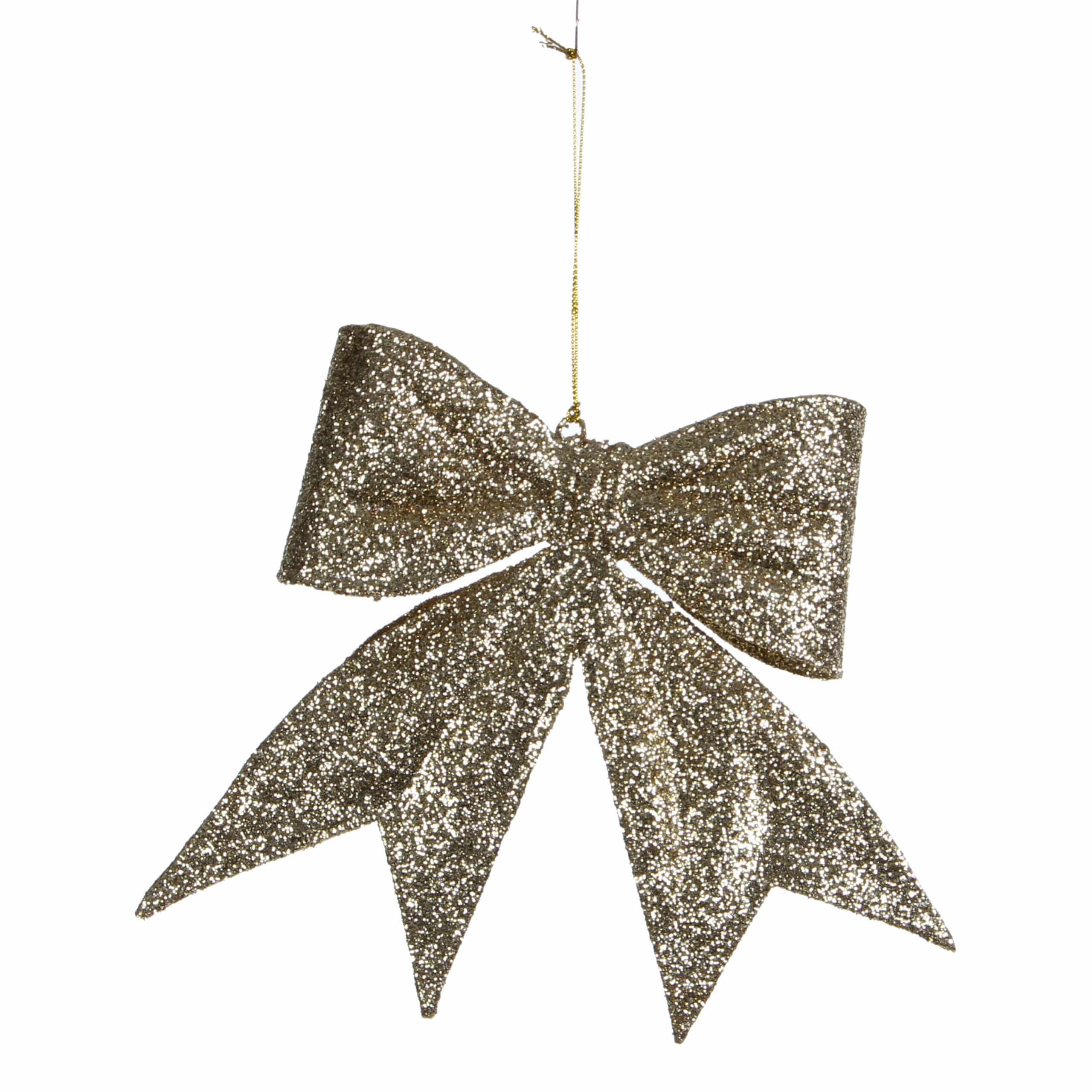 Søjfe i guldfarvet med glimmer. Pynt fx juletræet med store sløjfer og julekugler i samme farve eller brug sløjfen sammen med granguirlanden. Mål:Længde: 15 cm.Bredde: 15 cm. Højde: 2 cm.Pakket med 1 stk.