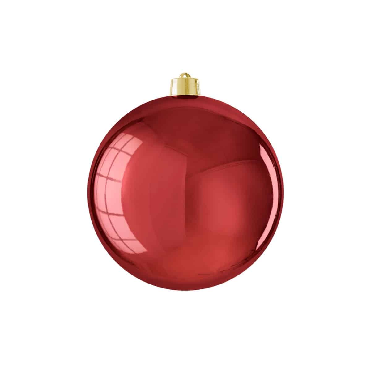 Stor julekugle i skinnende mørkerød plast med en diameter på 20 cm. En elegant og dekorativ julekugle, der skaber et markant blikfang både ude og inde. Ideel som julepynt i vinduer, nedhængt fra loftet, på havens grene eller sammen med granguirlander. Den